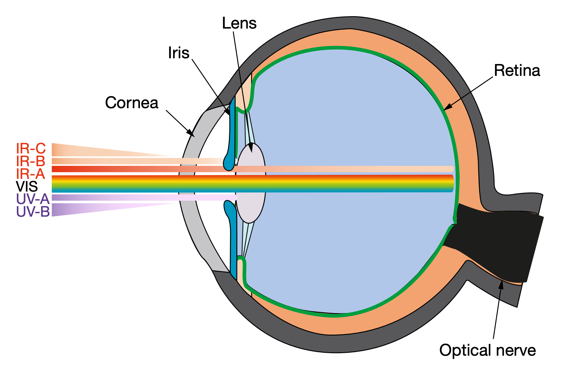 Image above taken from this paper on photobiological safety, according to which light on the 380 — 1,400 nm may bring retinal thermal injuries.